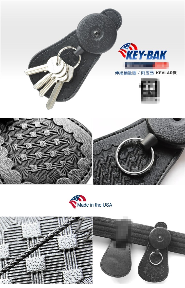品名:KEY BAK 伸縮鑰匙圈/附皮墊 (KEVLAR款)