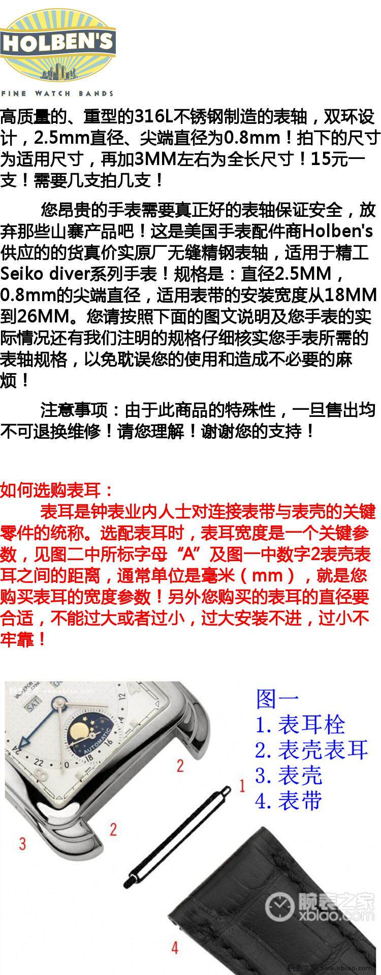 品牌 other/其他 材质 精钢 颜色分类 2.5MM直径 普通手表不可用 15元一根 配件类型 其他 尺寸 18mm,19mm,20mm,22mm,26mm,24mm,23mm,21mm 图文详情