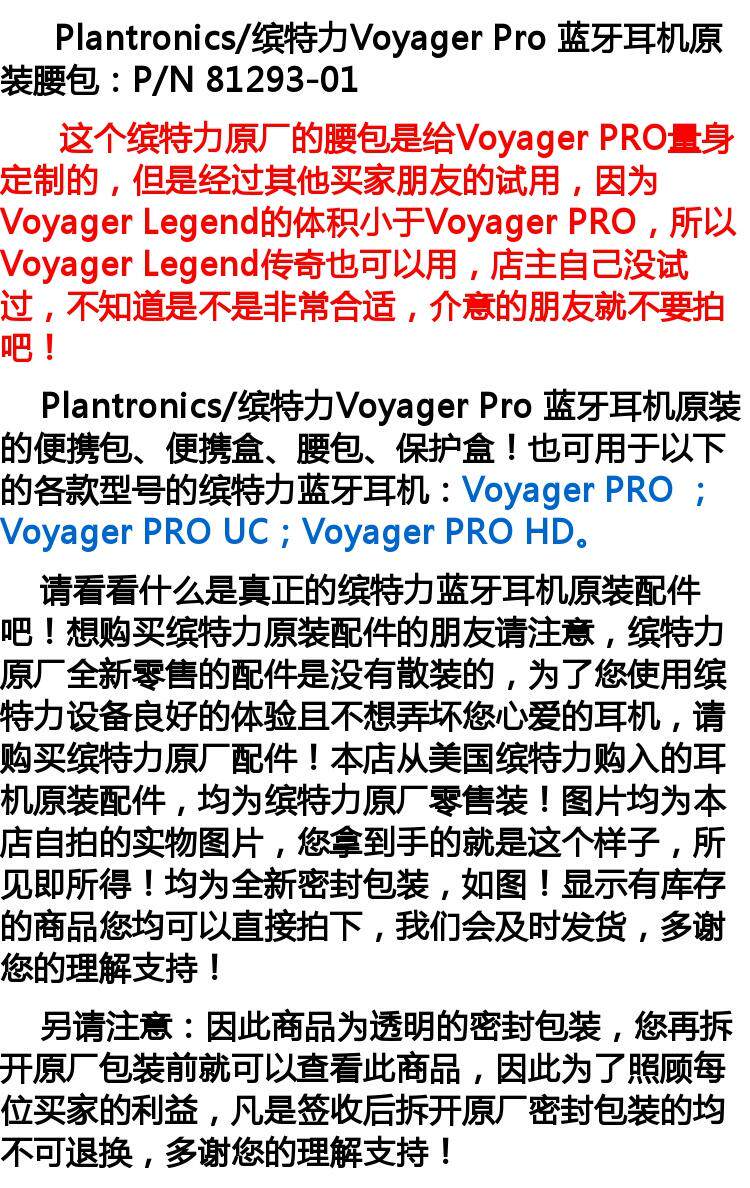 参数信息 品牌 Plantronics/缤特力 型号 Voyager Legend 材质 硅胶 风格 商务 适用的耳机品牌 其他 颜色分类 缤特力原厂正品塑封零售装 触感 软壳 图文详情