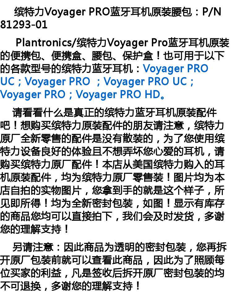 参数信息 品牌 Plantronics/缤特力 型号 Voyager Pro+ UC HD 材质 其他/other 风格 商务 适用的耳机品牌 其他 颜色分类 缤特力原厂封装正品 触感 硬壳 图文详情