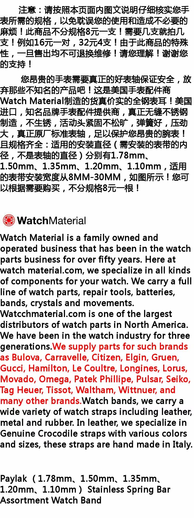 参数信息 品牌 Watch Material 材质 精钢 颜色分类 1.10MM直径 8元一根 拍下尺寸均为适用尺寸非全长尺寸 尺寸 21mm,9mm,8mm,22cm,10mm,11mm,12mm,13mm,14mm,15mm,16mm,17mm,18mm,19mm,20mm,24mm,23mm 图文详情